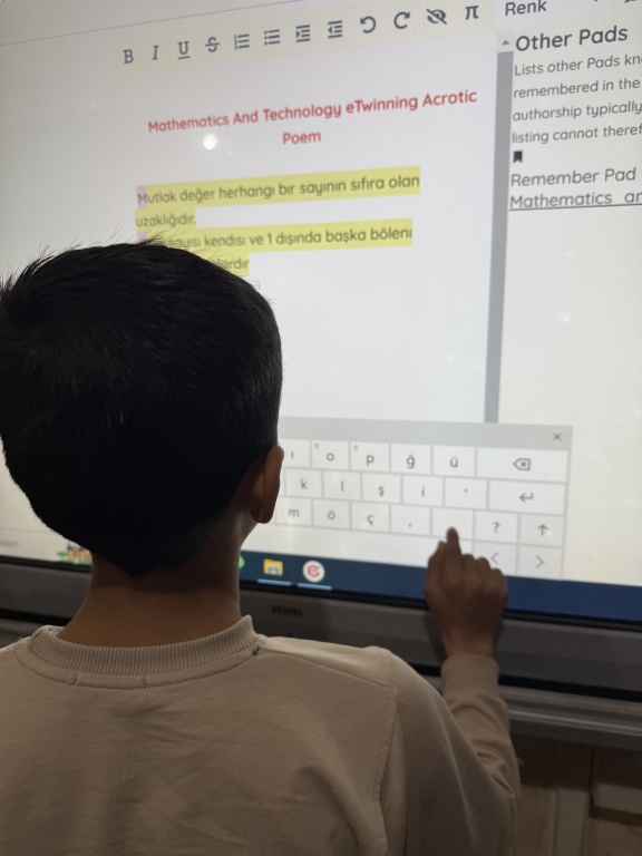 Proje kapsamında öğrencilerimiz, her ay farklı etkinliklerle ve çeşitli Web 2.0 araçlarıyla matematikte teknolojiyi kullanarak öğrenmeye teşvik edilmektedir. Tüm çalışmalar, okulumuzun matematik öğretmeni Zeynep Sevim rehberliğinde büyük bir özveriyle yürütülmektedir.